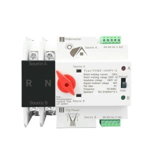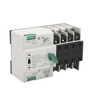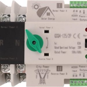 Professional-grade 63A 2-pole automatic transfer switch designed for solar PV systems. Seamlessly switches between power sources with intelligent control. Essential for grid-tied solar installations requiring reliable power source management.