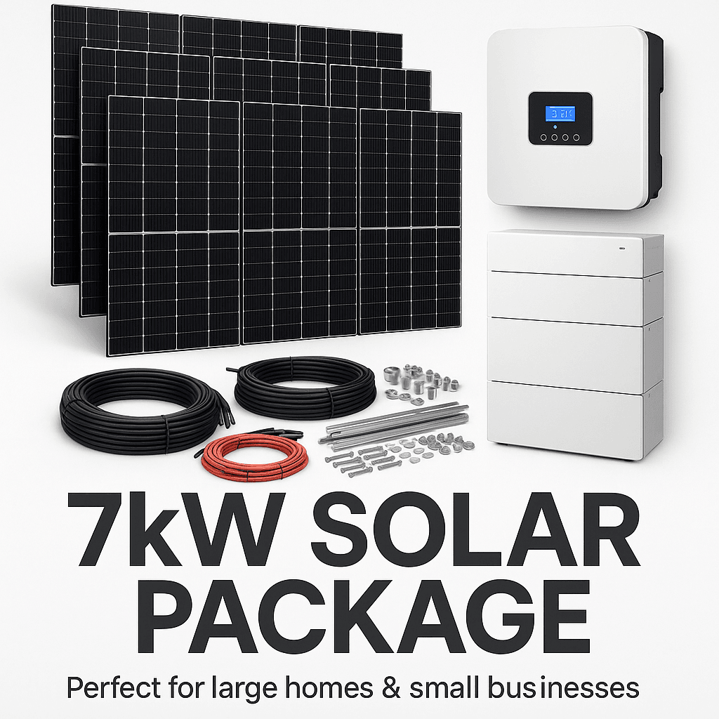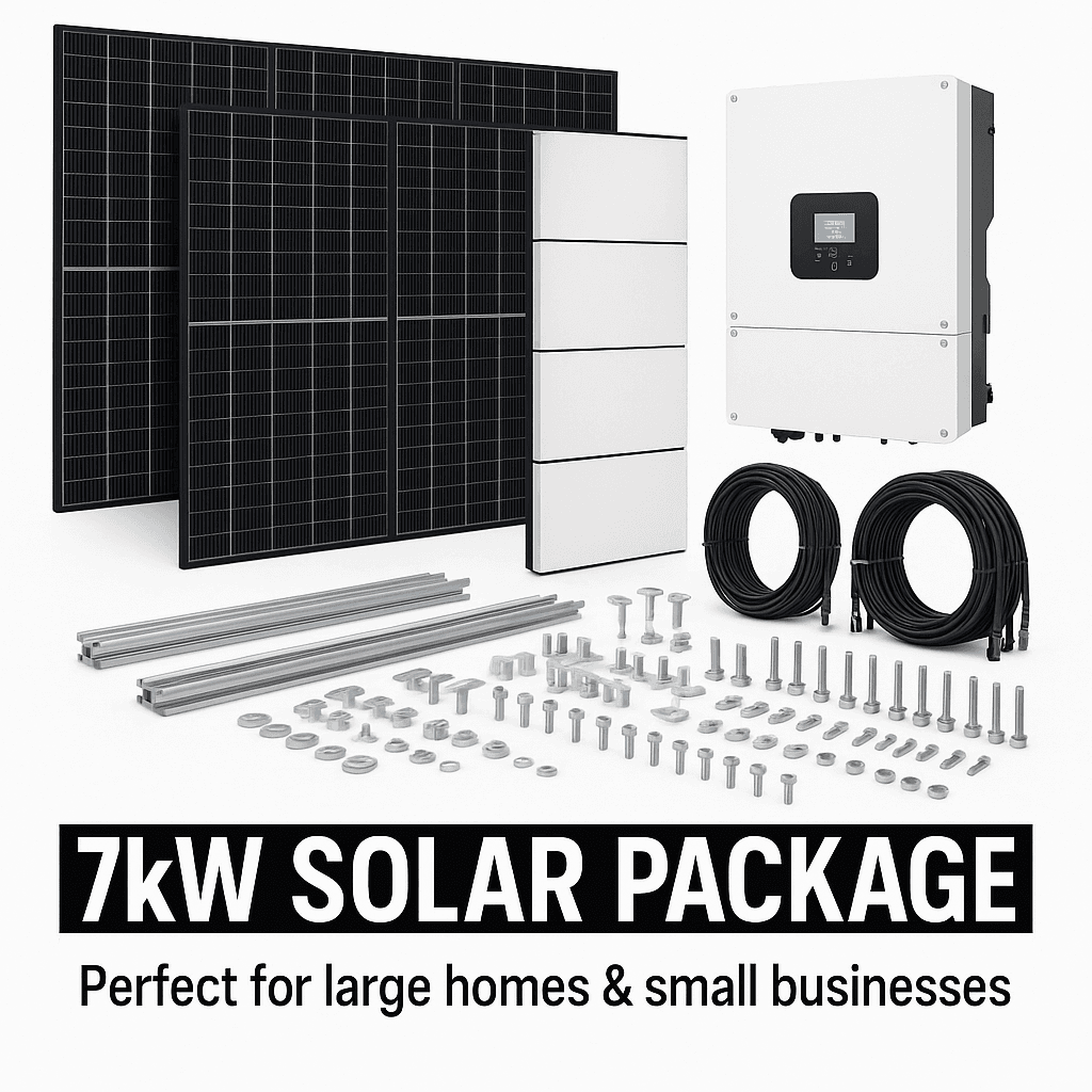 Premium Reliability Standards Featuring 14 premium 550W solar panels and robust 800Ah battery storage, this system ensures superior performance for both residential and commercial applications. The advanced 7kVA hybrid inverter provides seamless power management for the most demanding applications and future expansion needs.